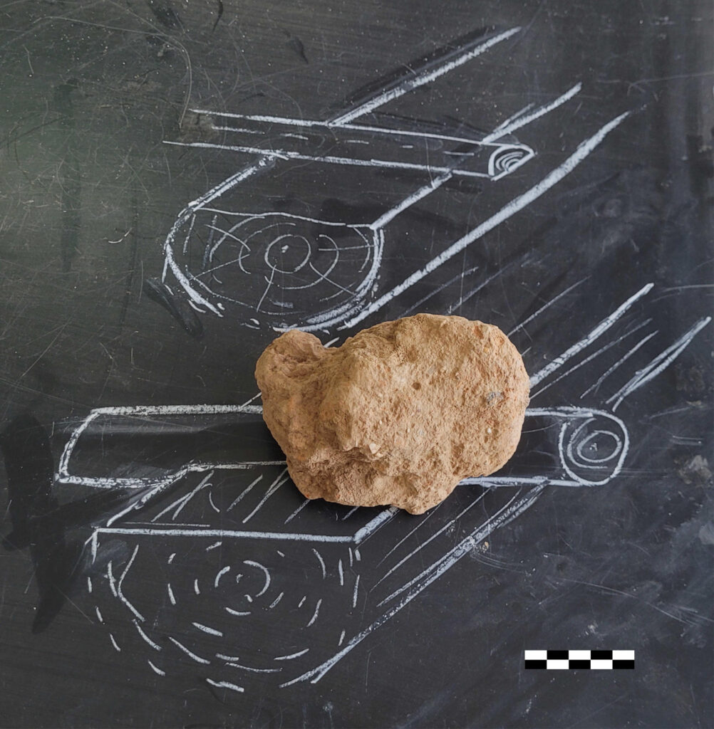 Fig. 1a – Restitution of wooden pieces by the technical study of a building earth fragment. (c) P. Bacoup