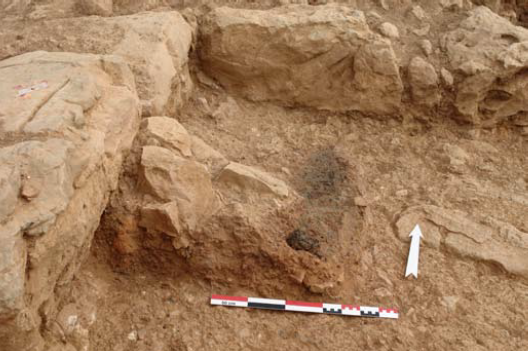 Fig. 2 – Remains of charred beam in tumble covering the west part of street 8.1, from Fig. 5.78. south (Q. Letesson, Sissi II, fig. 5.78)