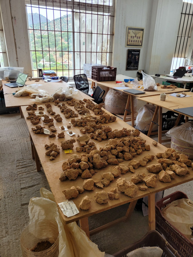 This ongoing research began in 2024 with a survey of suitable contexts and was followed by a study campaign in May 2025 (fig. 3). The investigation currently focuses on Spaces 5.11/5.12/5.13 of Building E (Postpalatial, LM IIIB), Spaces 4.19/4.22 of Building CD (Neopalatial, LM IB), and Spaces 8.15/8.16 of Building B (Neopalatial, MM IIIA).